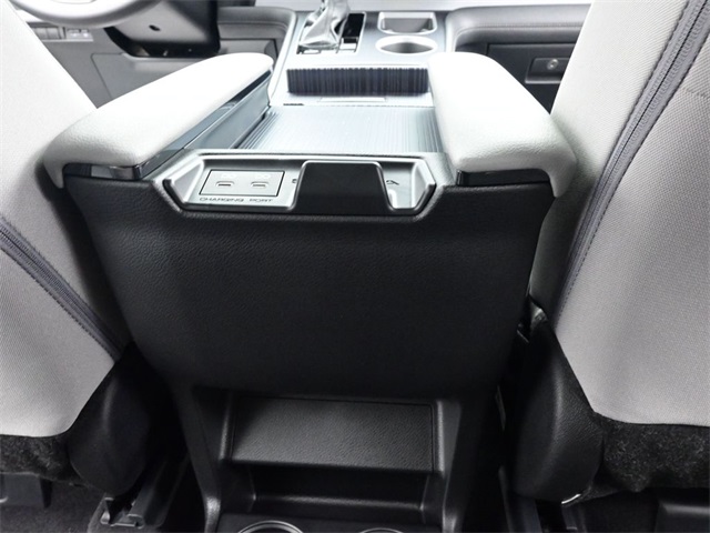 - Fixed center console, pass-through, illuminated storage compartment, and four cup holders