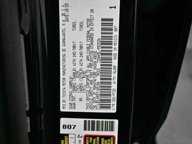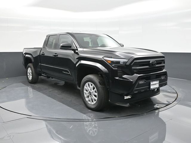 Black 2025 Toyota Tacoma SR5 4WD 8-Speed Automatic 2.4L 4-Cylinder apple car play, android, vehicle protection premium package, charging and connectivity kit, blackout package, full-size spare tire, exhaust tip black chrome, ball mount, long bed, ABS brakes, Alloy wheels, Electronic Stability Control, Heated door mirrors, Illuminated entry, Low tire pressure warning, Remote keyless entry, Traction control. Doggett Toyota of Beaumont is proud to present you with another True Market Priced Pre-Owned Vehicle. This 2025 Toyota Tacoma SR5 is loaded with the following Factory Options: ABS brakes, Alloy wheels, Electronic Stability Control, Heated door mirrors, Illuminated entry, Low tire pressure warning, Remote keyless entry, and Traction control ABS brakes, Alloy wheels, Electronic Stability Control, Heated door mirrors, Illuminated entry, Low tire pressure warning, Remote keyless entry, Traction control, 3.583 Axle Ratio, 4-Wheel Disc Brakes, Air Conditioning, AM/FM radio: SiriusXM, Anti-whiplash front head restraints, Apple CarPlay/Android Auto, Auto High-beam Headlights, Auto-dimming Rear-View mirror, Brake assist, Bumpers: body-color, Driver door bin, Dual front impact airbags, Dual front side impact airbags, Emergency communication system: Safety Connect (1-year trial), Exterior Parking Camera Rear, Four wheel independent suspension, Front anti-roll bar, Front Bucket Seats, Front Center Armrest, Front fog lights, Front reading lights, Fully automatic headlights, Knee airbag, Occupant sensing airbag, Outside temperature display, Overhead airbag, Overhead console, Panic alarm, Passenger door bin, Power door mirrors, Power steering, Power windows, Rear step bumper, Rear window defroster, Speed control, Speed-sensing steering, Split folding rear seat, Steering wheel mounted audio controls, Tachometer, Telescoping steering wheel, Tilt steering wheel, Trip computer, and Variably intermittent wipers!!