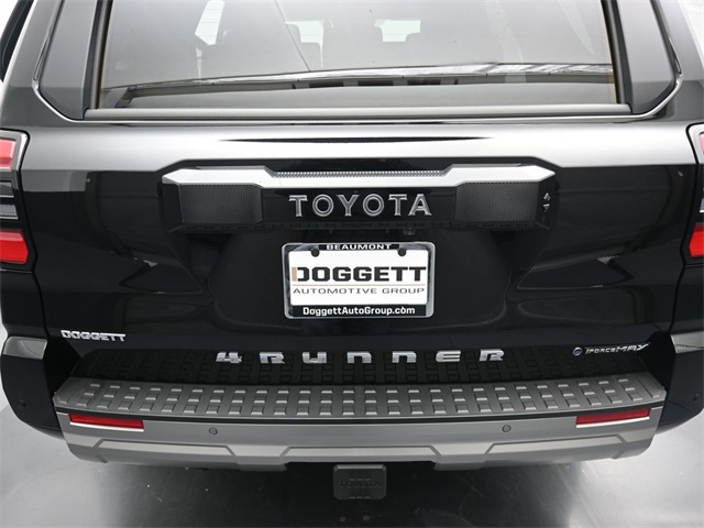 Black 2026 Toyota 4Runner i-FORCE MAX Hybrid Limited 4WD 8-Speed Automatic 2.4L 4-Cylinder ABS brakes, Active Cruise Control, Alloy wheels, Compass, Electronic Stability Control, Front dual zone A/C, Heated door mirrors, Heated front seats, Illuminated entry, Leather Seat Trim, Low tire pressure warning, Navigation System, Remote keyless entry, Traction control. Doggett Toyota of Beaumont is proud to present you with another True Market Priced Pre-Owned Vehicle. This 2026 Toyota 4Runner i-FORCE MAX Hybrid Limited is loaded with the following Factory Options: ABS brakes, Active Cruise Control, Alloy wheels, Compass, Electronic Stability Control, Front dual zone A/C, Heated door mirrors, Heated front seats, Illuminated entry, Leather Seat Trim, Low tire pressure warning, Navigation System, Remote keyless entry, and Traction control ABS brakes, Active Cruise Control, Alloy wheels, Compass, Electronic Stability Control, Front dual zone A/C, Heated door mirrors, Heated front seats, Illuminated entry, Leather Seat Trim, Low tire pressure warning, Navigation System, Remote keyless entry, Traction control, 15 Speakers, 4-Wheel Disc Brakes, Air Conditioning, AM/FM radio: SiriusXM, Anti-whiplash front head restraints, Apple CarPlay/Android Auto, Auto High-beam Headlights, Auto-dimming Rear-View mirror, Automatic temperature control, Brake assist, Bumpers: body-color, Delay-off headlights, Driver door bin, Driver vanity mirror, Dual front impact airbags, Dual front side impact airbags, Emergency communication system: Safety Connect (1-year trial), Exterior Parking Camera Rear, Front anti-roll bar, Front Bucket Seats, Front Center Armrest, Front fog lights, Front reading lights, Front wheel independent suspension, Fully automatic headlights, Heated and Ventilated Front Bucket Seats, Heated steering wheel, Knee airbag, Leather Shift Knob, Leather steering wheel, Memory seat, Occupant sensing airbag, Outside temperature display, Overhead airbag, Overhead console, Panic alarm, Passenger door bin, Passenger vanity mirror, Power door mirrors, Power driver seat, Power passenger seat, Power steering, Power windows, Radio: 14" Audio, Rear anti-roll bar, Rear seat center armrest, Rear side impact airbag, Rear window defroster, Rear window wiper, Security system, Speed control, Speed-sensing steering, Split folding rear seat, Spoiler, Steering wheel mounted audio controls, Tachometer, Telescoping steering wheel, Tilt steering wheel, Trip computer, Turn signal indicator mirrors, Variably intermittent wipers, Ventilated front seats, and Wheels: 20 Inch Gray Painted Alloy!!