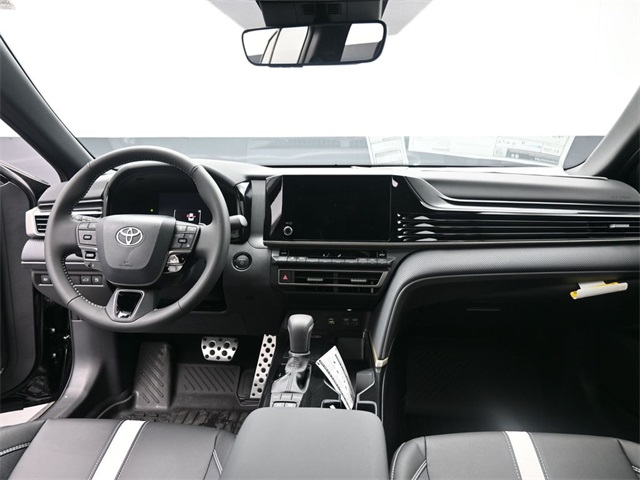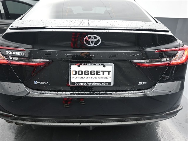 Midnight Black Metallic 2026 Toyota Camry SE FWD eCVT 2.5L 4-Cylinder 16V DOHC apple ca rplay, android, vehicle protection premium package, rear cargo organizer, mud guards, door sill protectors, cargo net, connectivity kit, front accent lights*, ABS brakes, Active Cruise Control, Alloy wheels, Convenience Package, Electronic Stability Control, Front dual zone A/C, Heated door mirrors, Illuminated entry, Low tire pressure warning, Power Tilt/Slide Moonroof, Remote keyless entry, Smart Key System on Front Doors, Traction control. Doggett Toyota of Beaumont is proud to present you with another True Market Priced Pre-Owned Vehicle. This 2026 Toyota Camry SE is loaded with the following Factory Options: Convenience Package (Smart Key System on Front Doors), ABS brakes, Active Cruise Control, Alloy wheels, Electronic Stability Control, Front dual zone A/C, Heated door mirrors, Illuminated entry, Low tire pressure warning, Power Tilt/Slide Moonroof, Remote keyless entry, and Traction control Convenience Package (Smart Key System on Front Doors), ABS brakes, Active Cruise Control, Alloy wheels, Electronic Stability Control, Front dual zone A/C, Heated door mirrors, Illuminated entry, Low tire pressure warning, Power Tilt/Slide Moonroof, Remote keyless entry, Traction control, 4-Wheel Disc Brakes, 6 Speakers, Air Conditioning, AM/FM radio: SiriusXM, Apple CarPlay/Android Auto, Auto High-beam Headlights, Automatic temperature control, Brake assist, Bumpers: body-color, Delay-off headlights, Driver door bin, Driver vanity mirror, Dual front impact airbags, Dual front side impact airbags, Emergency communication system: Safety Connect (5-year trial), Exterior Parking Camera Rear, Four wheel independent suspension, Front anti-roll bar, Front Bucket Seats, Front Center Armrest, Front reading lights, Front Seats, Fully automatic headlights, Knee airbag, Leather Shift Knob, Leather steering wheel, Occupant sensing airbag, Outside temperature display, Overhead airbag, Overhead console, Panic alarm, Passenger door bin, Passenger vanity mirror, Power door mirrors, Power driver seat, Power steering, Power windows, Radio data system, Radio: 8" Toyota Audio Multimedia, Rear anti-roll bar, Rear reading lights, Rear seat center armrest, Rear window defroster, Security system, Speed control, Speed-sensing steering, Split folding rear seat, Spoiler, Steering wheel mounted audio controls, Telescoping steering wheel, Tilt steering wheel, Trip computer, Turn signal indicator mirrors, Variably intermittent wipers, and Wheels: 18" Multi-Spoke Black-Finished Alloy!!