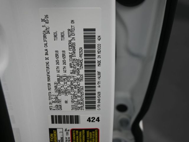 Ice Cap 2026 Toyota Tacoma TRD Off-Road 4WD 8-Speed Automatic 2.4L 4-Cylinder APPLE CAR PLAY, ANDROID, arb rear tow hooks*, spray-on bed liner**, predator step**, tailgate insert - black, ball mount, connectivity kit, exhaust tip - black chrome, vehicle protection premium package, 3D Multi-Terrain Monitor, 8-Way Power Driver and Passenger Seat Adjusters, ABS brakes, Alloy wheels, Digital Rearview Mirror, Electronic Stability Control, Heated door mirrors, Heated Front Seats, Heated Leather-Trimmed Steering Wheel, Illuminated entry, Integrated Trailer Brake Controller, JBL Premium Audio, Low Auxiliary (30A) Switches, Low tire pressure warning, Power Horizontal Rear Window, Power Tilt/Slide Moonroof with Sliding Sunshade, Pre-Wire Accommodation (bed Power Port), Radio: 14" Toyota Audio Multimedia with TRD Premium, Remote keyless entry, Smart Key w/Digital Key Technology, TACOMA Stamped Power Open and Close Tailgate, Towing Hitch, Towing Package, Traction control, TRD Off Road Premium Package. Doggett Toyota of Beaumont is proud to present you with another True Market Priced Vehicle. This 2026 Toyota Tacoma TRD Off-Road is loaded with the following Factory Options: Towing Package (Integrated Trailer Brake Controller and Towing Hitch), TRD Off Road Premium Package (3D Multi-Terrain Monitor, 8-Way Power Driver and Passenger Seat Adjusters, Digital Rearview Mirror, Heated Front Seats, Heated Leather-Trimmed Steering Wheel, JBL Premium Audio, Low Auxiliary (30A) Switches, Power Horizontal Rear Window, Power Tilt/Slide Moonroof with Sliding Sunshade, Pre-Wire Accommodation (bed Power Port), Radio: 14" Toyota Audio Multimedia with TRD Premium, Smart Key w/Digital Key Technology, and TACOMA Stamped Power Open and Close Tailgate), ABS brakes, Alloy wheels, Electronic Stability Control, Heated door mirrors, Illuminated entry, Low tire pressure warning, Remote keyless entry, and Traction control Towing Package (Integrated Trailer Brake Controller and Towing Hitch), TRD Off Road Premium Package (3D Multi-Terrain Monitor, 8-Way Power Driver and Passenger Seat Adjusters, Digital Rearview Mirror, Heated Front Seats, Heated Leather-Trimmed Steering Wheel, JBL Premium Audio, Low Auxiliary (30A) Switches, Power Horizontal Rear Window, Power Tilt/Slide Moonroof with Sliding Sunshade, Pre-Wire Accommodation (bed Power Port), Radio: 14" Toyota Audio Multimedia with TRD Premium, Smart Key w/Digital Key Technology, and TACOMA Stamped Power Open and Close Tailgate), ABS brakes, Alloy wheels, Electronic Stability Control, Heated door mirrors, Illuminated entry, Low tire pressure warning, Remote keyless entry, Traction control, 3.583 Axle Ratio, 4-Wheel Disc Brakes, Air Conditioning, AM/FM radio: SiriusXM, Anti-whiplash front head restraints, Apple CarPlay/Android Auto, Auto High-beam Headlights, Auto-dimming Rear-View mirror, Brake assist, Bumpers: body-color, Driver door bin, Dual front impact airbags, Dual front side impact airbags, Emergency communication system: Safety Connect (up to 10-year trial subscription), Exterior Parking Camera Rear, Four wheel independent suspension, Front anti-roll bar, Front Bucket Seats, Front Center Armrest, Front fog lights, Front reading lights, Fully automatic headlights, Knee airbag, Occupant sensing airbag, Outside temperature display, Overhead airbag, Overhead console, Panic alarm, Passenger door bin, Power door mirrors, Power steering, Power windows, Rear step bumper, Rear window defroster, Speed control, Speed-sensing steering, Split folding rear seat, Steering wheel mounted audio controls, Tachometer, Telescoping steering wheel, Tilt steering wheel, Trip computer, and Variably intermittent wipers!!