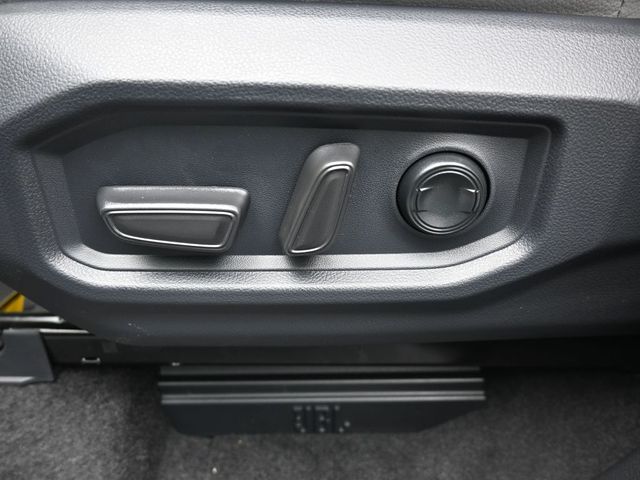 - Leather-trimmed seats with contrast stitching; 8-way power-adjustable driver and front passenger seats with power-adjustable lumbar support