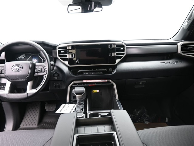Midnight Black 2026 Toyota Tundra SR5 4WD 10-Speed Automatic 3.4L V6 Doggett Toyota of Beaumont is proud to present you with another True Market Priced Pre-Owned Vehicle. This 2026 Toyota Tundra SR5 is loaded with the following Factory Options: 18" Alloy Wheels, 3.31 Axle Ratio, 4-Way Manual Front Seats, 4-Wheel Disc Brakes, 9 Speakers, ABS brakes, Air Conditioning, Alloy wheels, AM/FM radio: SiriusXM, Apple CarPlay/Android Auto, Auto High-beam Headlights, Automatic temperature control, Bed Step, Brake assist, Bumpers: body-color, Delay-off headlights, Driver door bin, Driver vanity mirror, Dual front impact airbags, Dual front side impact airbags, Electronic Stability Control, Emergency communication system: Safety Connect (up to 10-year trial subscription), Exterior Parking Camera Rear, Fabric Seat Trim (FB), Front anti-roll bar, Front Bucket Seats, Front Center Armrest, Front fog lights, Front reading lights, Front wheel independent suspension, Fully automatic headlights, Heated door mirrors, Illuminated entry, Knee airbag, Leather Seat Trim, Low tire pressure warning, Occupant sensing airbag, Outside temperature display, Overhead airbag, Overhead console, Panic alarm, Passenger door bin, Passenger vanity mirror, Power door mirrors, Power driver seat, Power steering, Power windows, Radio data system, Radio: Audio Multimedia System, Radio: Audio Plus, Rear reading lights, Rear step bumper, Rear window defroster, Remote keyless entry, Safety Connect, Security system, Speed control, Speed-sensing steering, Split folding rear seat, Steering wheel mounted audio controls, Tachometer, Telescoping steering wheel, Tilt steering wheel, Traction control, Trip computer, Variably intermittent wipers, and Voltmeter!!