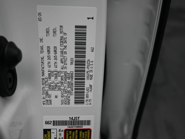 Wind Chill Pearl 2026 Toyota Tundra Platinum 4WD 10-Speed Automatic 3.4L V6 APPLE CAR PLAY, ANDROID, head-up display, vehicle protection premium package:, off-road front skid plate, bed step *, non-skid spray-on bed liner*, predator drop step *, wheel locks**, tailgate insert - black, connectivity kit, center console safe, rear under seat lockable storage, Multi-Terrain Back Monitor, Navigation System, TRD Off-Road Package, Wheels: : 20" TRD Alloy. Doggett Toyota of Beaumont is proud to present you with another True Market Priced Vehicle. This 2026 Toyota Tundra Platinum is loaded with the following Factory Options: TRD Off-Road Package (Multi-Terrain Back Monitor and Wheels: : 20" TRD Alloy) and Navigation System TRD Off-Road Package (Multi-Terrain Back Monitor and Wheels: : 20" TRD Alloy), Navigation System, 10-Way Power Adjustable Heated and Ventilated Front Seats, 12 Speakers, 3.31 Axle Ratio, 4-Wheel Disc Brakes, ABS brakes, Air Conditioning, Alloy wheels, AM/FM radio: SiriusXM, Apple CarPlay/Android Auto, Auto High-beam Headlights, Auto-dimming door mirrors, Auto-dimming Rear-View mirror, Automatic temperature control, Bed Step, Brake assist, Bumpers: body-color, Compass, Delay-off headlights, Driver door bin, Driver vanity mirror, Dual front impact airbags, Dual front side impact airbags, Electronic Stability Control, Emergency communication system: Safety Connect (up to 10-year trial subscription), Exterior Parking Camera Rear, Front anti-roll bar, Front Bucket Seats, Front Center Armrest, Front dual zone A/C, Front fog lights, Front reading lights, Front wheel independent suspension, Fully automatic headlights, Garage door transmitter: HomeLink, Head Up Display (HUD), Heated door mirrors, Heated front seats, Heated rear seats, Heated steering wheel, Illuminated entry, Knee airbag, Leather Shift Knob, Leather steering wheel, Low tire pressure warning, Memory seat, Navigation system: Drive Connect Cloud Navigation (1-year trial subscription), Occupant sensing airbag, Outside temperature display, Overhead airbag, Overhead console, Panic alarm, Passenger door bin, Passenger vanity mirror, Power door mirrors, Power driver seat, Power moonroof, Power passenger seat, Power steering, Power windows, Predator Drop Step, Premium Leather Seat Trim, Radio data system, Radio: Premium Audio, Rain sensing wipers, Rear reading lights, Rear seat center armrest, Rear step bumper, Rear window defroster, Remote keyless entry, Safety Connect, Security system, Speed control, Speed-sensing steering, Speed-Sensitive Wipers, Split folding rear seat, Steering wheel memory, Steering wheel mounted audio controls, Tachometer, Telescoping steering wheel, Tilt steering wheel, Traction control, Trip computer, Turn signal indicator mirrors, Variably intermittent wipers, Ventilated front seats, Ventilated rear seats, Voltmeter, Wheel Locks, and Wheels: 20" Dark Painted Alloy!!