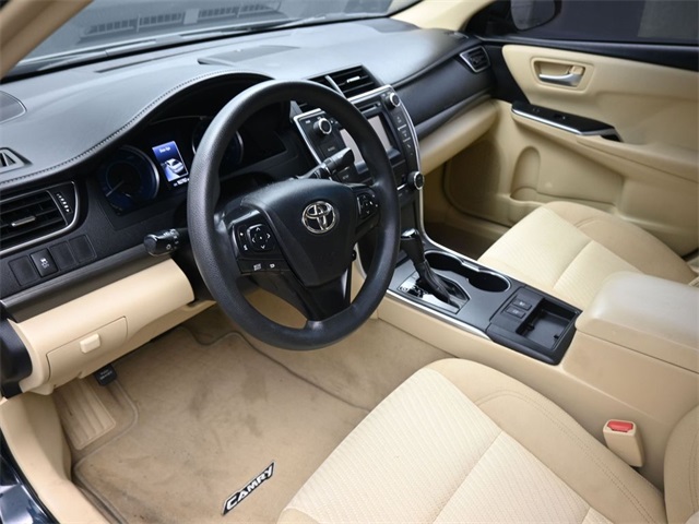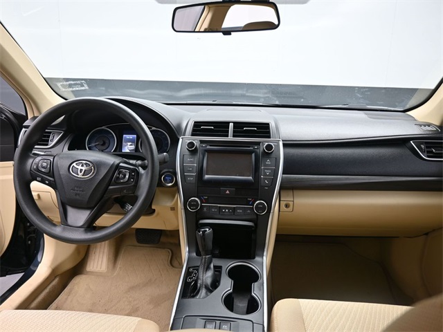 Doggett Toyota of Beaumont is proud to present you with another True Market Priced Pre-Owned Vehicle. This 2015 Toyota Camry Hybrid LE is loaded with the following Factory Options: ABS brakes, Electronic Stability Control, Front dual zone A/C, Heated door mirrors, Illuminated entry, Low tire pressure warning, Remote keyless entry, and Traction control ABS brakes, Electronic Stability Control, Front dual zone A/C, Heated door mirrors, Illuminated entry, Low tire pressure warning, Remote keyless entry, Traction control, 4-Wheel Disc Brakes, 6 Speakers, Air Conditioning, AM/FM radio, Automatic temperature control, Brake assist, Bumpers: body-color, CD player, Delay-off headlights, Driver door bin, Driver vanity mirror, Dual front impact airbags, Dual front side impact airbags, Exterior Parking Camera Rear, Fabric Seat Trim, Four wheel independent suspension, Front anti-roll bar, Front Bucket Seats, Front Center Armrest, Front reading lights, Fully automatic headlights, Knee airbag, Occupant sensing airbag, Outside temperature display, Overhead airbag, Overhead console, Panic alarm, Passenger door bin, Passenger vanity mirror, Power door mirrors, Power driver seat, Power steering, Power windows, Radio data system, Radio: Entune Audio, Rear anti-roll bar, Rear seat center armrest, Rear side impact airbag, Rear window defroster, Speed control, Speed-sensing steering, Split folding rear seat, Steering wheel mounted audio controls, Telescoping steering wheel, Tilt steering wheel, Trip computer, Variably intermittent wipers, and Wheels: 7.0J x 16" Steel!!
