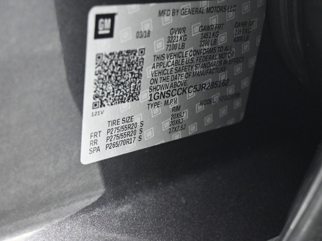 Recent Arrival! Doggett Ford South Loop is proud to present you with another True Market Priced Vehicle. This 2018 Chevrolet Tahoe Premier is loaded with the following Factory Options: Enhanced Driver Alert Package (Y86) (Forward Collision Alert, IntelliBeam Headlamps, Lane Keep Assist w/Lane Departure Warning, and Low Speed Forward Automatic Braking), License Plate Front Mounting Package, Magnetic Ride Control Suspension Package, Max Trailering Package (Integrated Trailer Brake Controller), Preferred Equipment Group 1LZ (1st & 2nd Row Color-Keyed Carpeted Floor Mats, 3rd Row 60/40 Power Fold Split-Bench, 4-Wheel Antilock Disc Brakes w/Brake Assist, 5 12-Volt Auxiliary Power Outlets, Auto-Dimming Inside Rear-View Mirror, Black Assist Steps w/Chrome Accent Strip, Bose Centerpoint Premium 10-Speaker Surround Sound, Cargo Net, Color-Keyed Carpeting Floor Covering, Driver Inboard & Front Passenger Airbags, Electronic Cruise Control w/Set & Resume Speed, Floor Console, Fog Lamps, Front & Rear Park Assist, Front Passenger 6-Way Power Seat Adjuster, Hands Free Power Liftgate, Heated & Ventilated Driver & Front Passenger Seats, Heated 2nd Row Seats, Heated Leather Wrapped Steering Wheel, Lane Change Alert w/Side Blind Zone Alert, Memory Settings, OnStar Basic Plan For 5 Years, Passive Entry System, Power Release 2nd Row Bucket Seats, Power Tilt & Telescopic Steering Column, Power-Adjustable Accelerator & Brake Pedals, Power-Folding Heated Outside Mirrors, Push Button Keyless Start, Rear Cross-Traffic Alert, Remote Keyless Entry, Remote Vehicle Start, Roof-Mounted Luggage Rack Side Rails, SiriusXM NavTraffic, SiriusXM Satellite Radio, Universal Home Remote, and Wireless Charging), 10 Speakers, 3rd row seats: split-bench, 4-Wheel Disc Brakes, ABS brakes, Adaptive suspension, Adjustable pedals, Air Conditioning, Alloy wheels, AM/FM radio: SiriusXM, Apple CarPlay/Android Auto, Auto High-beam Headlights, Auto-dimming door mirrors, Auto-dimming Rear-View mirror, Automatic temperature control, Bluetooth® For Phone, Bodyside moldings, Brake assist, Bumpers: body-color, CD player, Compass, Delay-off headlights, Driver door bin, Driver vanity mirror, Dual front impact airbags, Dual front side impact airbags, Electronic Stability Control, Emergency communication system: OnStar Guidance, Exterior Parking Camera Rear, Front anti-roll bar, Front Bucket Seats, Front Center Armrest, Front dual zone A/C, Front fog lights, Front Heated Reclining Bucket Seats, Front reading lights, Front wheel independent suspension, Fully automatic headlights, Garage door transmitter, HD Radio, Heated door mirrors, Heated front seats, Heated rear seats, Heated steering wheel, High-Intensity Discharge Headlights, Illuminated entry, Low tire pressure warning, Memory seat, Navigation System, Occupant sensing airbag, Outside temperature display, Overhead airbag, Overhead console, Panic alarm, Passenger door bin, Passenger vanity mirror, Pedal memory, Perforated Leather-Appointed Seat Trim, Polished Exhaust Tip, Power door mirrors, Power driver seat, Power Liftgate, Power passenger seat, Power steering, Power windows, Premium audio system: Chevrolet MyLink, Radio: Chevrolet MyLink w/Nav/AM/FM Stereo, Rain sensing wipers, Rear air conditioning, Rear anti-roll bar, Rear reading lights, Rear window defroster, Rear window wiper, Remote keyless entry, Roof rack: rails only, Security system, Single-Slot CD/MP3 Player, Speed control, Speed-sensing steering, Split folding rear seat, Spoiler, Steering wheel memory, Steering wheel mounted audio controls, Tachometer, Telescoping steering wheel, Tilt steering wheel, Traction control, Trip computer, Turn signal indicator mirrors, Variably intermittent wipers, Ventilated front seats, Voltmeter, and Wheels: 20" x 9" Polished-Aluminum!!