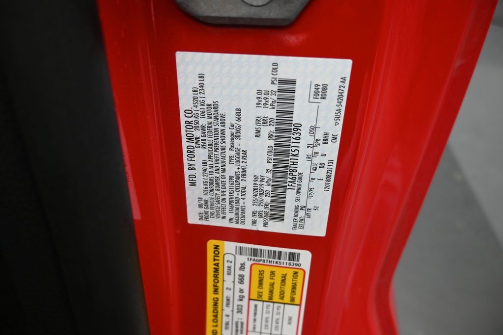 Recent Arrival! Certified. Doggett Ford North Houston is proud to present you with another True Market Priced Vehicle. This 2019 Ford Mustang EcoBoost Premium is loaded with the following Factory Options: EcoBoost Performance Package (3.55 TORSEN Limited Slip Rear-Axle, Engine Spun Aluminum Instrument Panel, Gauge Pack (Oil Pressure & Boost), HD Front Springs, Larger Brake Rotors, Larger Radiator, and Wheels: 19" x 9" Ebony Black-Painted Aluminum), Enhanced Security Package (Active Anti-Theft System and Wheel Locking Kit), Equipment Group 201A (Blind Spot Info System w/Cross-Traffic Alert, Leather Bucket Seats w/Color Accents, and Memory Driver Seat, Mirrors & Ambient Lighting), 4-Wheel Disc Brakes, 9 Speakers, ABS brakes, Air Conditioning, Alloy wheels, AM/FM radio: SiriusXM, AM/FM Stereo, AppLink/Apple CarPlay and Android Auto, Auto-dimming Rear-View mirror, Automatic temperature control, Brake assist, Bumpers: body-color, Climate Controlled Heated/Cooled Front Seats, Compass, Delay-off headlights, Driver door bin, Driver vanity mirror, Dual front impact airbags, Dual front side impact airbags, Electronic Stability Control, Emergency communication system: 911 Assist, Exterior Parking Camera Rear, Four wheel independent suspension, Front anti-roll bar, Front Bucket Seats, Front Center Armrest, Front dual zone A/C, Front fog lights, Front reading lights, Fully automatic headlights, Garage door transmitter, Heated door mirrors, Heated front seats, Illuminated entry, Knee airbag, Leather Bucket Seats, Leather Shift Knob, Low tire pressure warning, Occupant sensing airbag, Outside temperature display, Overhead airbag, Overhead console, Panic alarm, Passenger door bin, Passenger vanity mirror, Power door mirrors, Power driver seat, Power passenger seat, Power steering, Power windows, Radio data system, Rear anti-roll bar, Rear window defroster, Remote keyless entry, Security system, SiriusXM Radio, Speed control, Speed-sensing steering, Speed-Sensitive Wipers, Split folding rear seat, Spoiler, Steering wheel mounted audio controls, SYNC 3 Communications & Entertainment System, Tachometer, Telescoping steering wheel, Tilt steering wheel, Traction control, Trip computer, Turn signal indicator mirrors, Variably intermittent wipers, Ventilated front seats, Voltmeter, and Wheels: 18" x 8" Machined-Face Aluminum!!