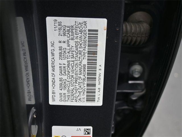 - 1.5L I-4 gasoline direct injection, DOHC, i-VTEC variable valve control, intercooled turbo, regular unleaded, engine with 192HP