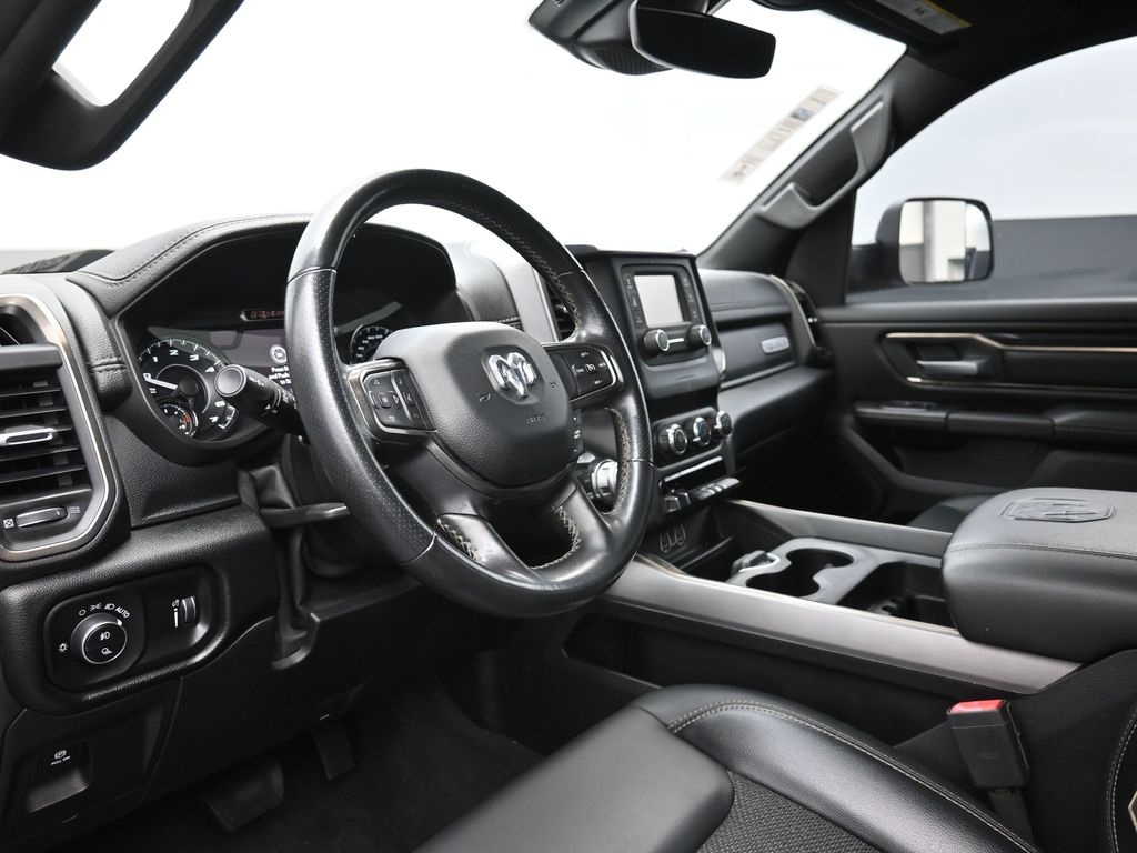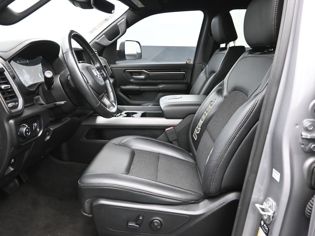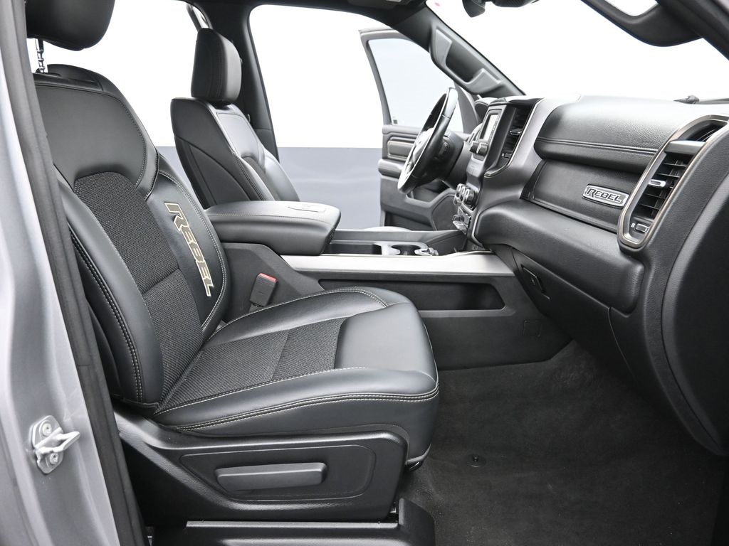 CARFAX One-Owner. Clean CARFAX. Doggett Ford South Loop is proud to present you with another True Market Priced Vehicle. This 2021 Ram 1500 Rebel is loaded with the following Factory Options: Quick Order Package 25W Rebel, 3.92 Rear Axle Ratio, 4 Way Front Headrests, 4-Wheel Disc Brakes, 48V Belt Starter Generator, 6 Speakers, ABS brakes, Air Conditioning, Alloy wheels, AM/FM radio: SiriusXM, Auto-dimming Rear-View mirror, Black Exterior Mirrors, Black Trailer Tow Power Mirrors, Brake assist, Bucket Seats, Cloth/Vinyl Low Back Bucket Seats, Compass, Delay-off headlights, Driver door bin, Dual front impact airbags, Dual front side impact airbags, Electric Shift-On-Demand Transfer Case, Electronic Stability Control, Exterior Mirrors Courtesy Lamps, Exterior Mirrors w/Heating Element, Exterior Mirrors w/Supplemental Signals, For More Info, Call 800-643-2112, Front anti-roll bar, Front Bucket Seats, Front Center Armrest w/Storage, Front fog lights, Front License Plate Bracket, Front reading lights, Front Seat Back Map Pockets, Front wheel independent suspension, Full Length Upgraded Floor Console, Fully automatic headlights, GPS Antenna Input, Heated door mirrors, Illuminated entry, Instrument Cluster Theme 5 - Rebel 2, Integrated Voice Command w/Bluetooth, Leather steering wheel, Low tire pressure warning, Manufacturer's Statement of Origin, MOPAR Spray In Bedliner, Occupant sensing airbag, Outside temperature display, Overhead airbag, Overhead console, Panic alarm, ParkView Rear Back-Up Camera, Passenger door bin, Passenger vanity mirror, Power 4-Way Driver Lumbar Adjust, Power door mirrors, Power driver seat, Power steering, Power windows, Radio data system, Radio: Uconnect 3 w/5" Display, Rear 60/40 Folding Seat, Rear anti-roll bar, Rear seat center armrest, Rear step bumper, Remote keyless entry, SiriusXM Radio Service, SiriusXM Satellite Radio, Speed control, Split folding rear seat, Steering wheel mounted audio controls, Tachometer, Telescoping steering wheel, Tilt steering wheel, Traction control, Trailer Brake Control, Trailer Tow Mirrors, Trip computer, Variably intermittent wipers, Voltmeter, and Wheels: 18" x 8.0" Painted Mid-Gloss Black!!