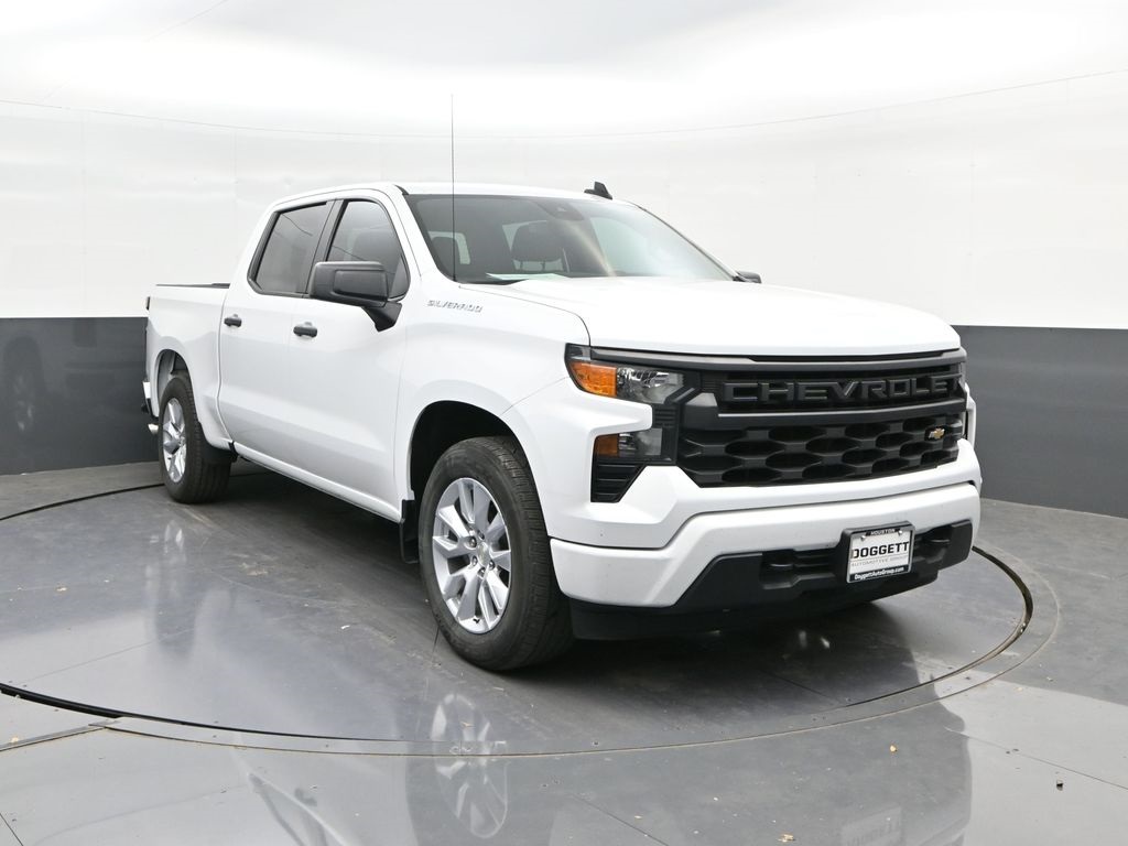 Recent Arrival! Clean CARFAX. Doggett Ford South Loop is proud to present you with another True Market Priced Vehicle. This 2022 Chevrolet Silverado 1500 Custom is loaded with the following Factory Options: Custom Convenience Package (Electric Rear-Window Defogger, EZ Lift Power Lock & Release Tailgate, LED Cargo Area Lighting, and Remote Vehicle Starter System), Custom Value Package, High Capacity Suspension Package, Preferred Equipment Group 1CX (10-Way Power Driver Seat w/Lumbar, 120-Volt Bed Mounted Power Outlet, 120-Volt Instrument Panel Power Outlet, 3.5" Monochromatic Display Driver Info Center, Bluetooth® For Phone, Chevrolet Connected Access Capable, Color-Keyed Carpeting Floor Covering, Compass, Deep-Tinted Glass, Dual Rear USB Ports (Charge Only), Electrical Steering Column Lock, Electronic Cruise Control, Front Frame-Mounted Black Recovery Hooks, Front Rubberized Vinyl Floor Mats, HD Rear Vision Camera, Manual Tilt Wheel Steering Column, OnStar & Chevrolet Connected Services Capable, Power Front Windows w/Driver Express Up/Down, Power Front Windows w/Passenger Express Down, Power Rear Windows w/Express Down, Rear 60/40 Folding Bench Seat (Folds Up), Rear Rubberized-Vinyl Floor Mats, Remote Keyless Entry, SiriusXM Radio, Standard Tailgate, Theft Deterrent System (Unauthorized Entry), Wi-Fi Hot Spot Capable, and Wireless Phone Projection), Trailering Package (Hitch Guidance), 3.42 Rear Axle Ratio, 4-Wheel Disc Brakes, 40/20/40 Front Split-Bench Seat, 6 Speakers, 6-Speaker Audio System, ABS brakes, Air Conditioning, Alloy wheels, AM/FM radio: SiriusXM, Apple CarPlay/Android Auto, Auto High-beam Headlights, Auto-Locking Rear Differential, Automatic Emergency Braking, Brake assist, Bumpers: body-color, Cloth Seat Trim, Delay-off headlights, Driver door bin, Driver vanity mirror, Dual front impact airbags, Dual front side impact airbags, Electronic Stability Control, Following Distance Indicator, Forward Collision Alert, Front anti-roll bar, Front Center Armrest w/Storage, Front License Plate Kit, Front Pedestrian Braking, Front reading lights, Front wheel independent suspension, Fully automatic headlights, Heated door mirrors, Illuminated entry, IntelliBeam Automatic High Beam On/Off, Lane Keep Assist w/Lane Departure Warning, Low tire pressure warning, Multi-Flex Tailgate, Not Equipped w/Rear USB Ports, Not Equipped w/Steering Column Lock, Occupant sensing airbag, Outside temperature display, Overhead airbag, Overhead console, Panic alarm, Passenger door bin, Passenger vanity mirror, Polished Exhaust Tip, Power door mirrors, Power driver seat, Power steering, Power windows, Premium audio system: Chevrolet Infotainment 3, Radio data system, Radio: Chevrolet Infotainment 3 System, Rear reading lights, Rear step bumper, Rear window defroster, Remote keyless entry, Security system, Speed control, Speed-sensing steering, Split folding rear seat, Tachometer, Tilt steering wheel, Traction control, Trip computer, Variably intermittent wipers, Voltmeter, and Wheels: 20" x 9" Bright Silver Painted Aluminum!!