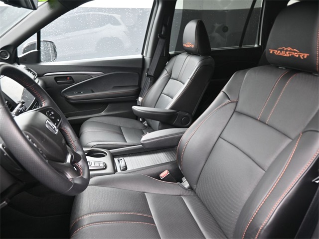Doggett Honda of Beaumont is proud to present you with another True Market Priced Pre-Owned Vehicle. This 2022 Honda Pilot TrailSport is loaded with the following Factory Options: 3rd row seats: split-bench, 4-Wheel Disc Brakes, 4.33 Axle Ratio, 7 Speakers, A/V remote: CabinControl, ABS brakes, Air Conditioning, Alloy wheels, AM/FM radio: SiriusXM, Apple CarPlay/Android Auto, Auto High-beam Headlights, Auto-dimming Rear-View mirror, Automatic temperature control, Blind Spot Information (BSI) System warning, Brake assist, Bumpers: body-color, Delay-off headlights, Driver door bin, Driver vanity mirror, Dual front impact airbags, Dual front side impact airbags, Electronic Stability Control, Emergency communication system: HondaLink Assist, Exterior Parking Camera Rear, Forward collision: Collision Mitigation Braking System (CMBS) + FCW mitigation, Four wheel independent suspension, Front anti-roll bar, Front Bucket Seats, Front Center Armrest, Front dual zone A/C, Front fog lights, Front reading lights, Fully automatic headlights, Garage door transmitter: HomeLink, Heated door mirrors, Heated Front Bucket Seats, Heated front seats, Illuminated entry, Lane departure: Lane Keeping Assist System (LKAS) active, Leather Seat Trim, Low tire pressure warning, Memory seat, Navigation system: Honda Satellite-Linked Navigation System, Occupant sensing airbag, Outside temperature display, Overhead airbag, Overhead console, Panic alarm, Passenger door bin, Passenger vanity mirror, Power door mirrors, Power driver seat, Power Liftgate, Power moonroof, Power passenger seat, Power steering, Power windows, Radio data system, Radio: 215-Watt Audio System, Rear air conditioning, Rear anti-roll bar, Rear reading lights, Rear seat center armrest, Rear window defroster, Rear window wiper, Reclining 3rd row seat, Remote keyless entry, Roof rack: rails only, Security system, Speed control, Speed-sensing steering, Speed-Sensitive Wipers, Split folding rear seat, Spoiler, Steering wheel mounted audio controls, Tachometer, Telescoping steering wheel, Tilt steering wheel, Traction control, Trip computer, Turn signal indicator mirrors, Variably intermittent wipers, and Wheels: 18" Exclusive Gloss Black Alloy!!