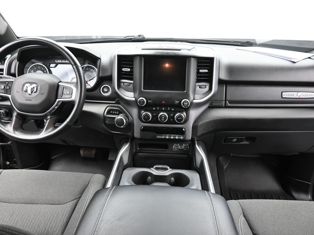 Doggett Ford South Loop is proud to present you with another True Market Priced Vehicle. This 2022 Ram 1500 Big Horn/Lone Star is loaded with the following Factory Options: Big Horn Level B Equipment Group (DISC) (115V Auxiliary Power Outlet, 115V Auxiliary Rear Power Outlet, 400W Inverter, 4G LTE Wi-Fi Hot Spot, 8.4" Touchscreen Display, Air Conditioning ATC w/Dual Zone Control, Apple CarPlay, Auto-Dimming Exterior Driver Mirror, Auto-Dimming Rear-View Mirror, Black Premium Power Mirrors (GUL), Bluetooth Handsfree Phone & Audio, Class IV Receiver Hitch, Cluster 7.0" TFT Color Display, Connectivity - US/Canada, Exterior Mirrors Courtesy Lamps, Exterior Mirrors w/Supplemental Signals, Foam Bottle Insert (Door Trim Panel), For More Info, Call 800-643-2112, Glove Box Lamp, Google Android Auto, Heated Front Seats, Heated Steering Wheel, Integrated Center Stack Radio, Media Hub w/2 Charge Only USBs, ParkSense Front/Rear Park Assist w/Stop, Power 2-Way Driver Lumbar Adjust, Power 8-Way Driver Seat, Power Adjustable Pedals, Radio: Uconnect 5 W w/8.4" Display, Rear Dome w/On/Off Switch Lamp, Rear Power Sliding Window, Rear Window Defroster, Remote Start System, Security Alarm, SiriusXM Radio Service, SiriusXM Satellite Radio, Sun Visors w/Illuminated Vanity Mirrors, Universal Garage Door Opener, and USB Host Flip), Quick Order Package 25R Lone Star (Regional) (Lone Star Badge), 3 Rear Seat Head Restraints, 3.21 Rear Axle Ratio, 4 Way Front Headrests, 4-Wheel Disc Brakes, 48V Belt Starter Generator, 6 Speakers, ABS brakes, Air Conditioning, Alloy wheels, AM/FM radio, Black Exterior Mirrors, Brake assist, Bumpers: chrome, Cloth Bench Seat, Compass, Convex Wide-Angle Mirror Insert, Delay-off headlights, Driver door bin, Dual front impact airbags, Dual front side impact airbags, Electronic Stability Control, Emergency communication system: SiriusXM Guardian, Front anti-roll bar, Front Center Armrest w/Storage, Front fog lights, Front License Plate Bracket, Front reading lights, Front Seat Back Map Pockets, Front wheel independent suspension, Fully automatic headlights, Global Telematics Box Module (TBM), GPS Antenna Input, Heated door mirrors, Illuminated entry, Integrated Voice Command w/Bluetooth, Leather steering wheel, Low tire pressure warning, Manual Adjust 4-Way Front Passenger Seat, Manufacturer's Statement of Origin, Occupant sensing airbag, Outside temperature display, Overhead airbag, Overhead console, Panic alarm, ParkView Rear Back-Up Camera, Passenger door bin, Passenger vanity mirror, Power door mirrors, Power steering, Power windows, Radio data system, Radio: Uconnect 3 w/5" Display, Rear 60/40 Folding Seat, Rear anti-roll bar, Rear seat center armrest, Rear step bumper, Remote keyless entry, Speed control, Split folding rear seat, Steering wheel mounted audio controls, Tachometer, Telescoping steering wheel, Tilt steering wheel, Traction control, Trip computer, Variably intermittent wipers, Voltmeter, and Wheels: 18" x 8" Cast-Aluminum Painted!!