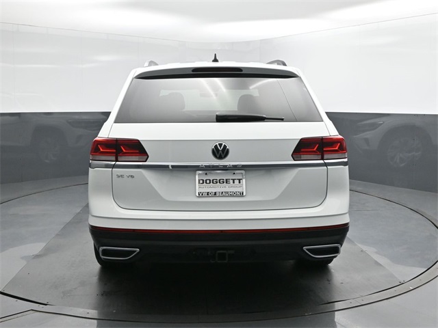 Volkswagen of Beaumont is proud to present you with another True Market Priced Pre-Owned Vehicle. This 2022 Volkswagen Atlas 3.6L V6 SE w/Technology is loaded with the following Factory Options: 3.60 Axle Ratio, 3rd row seats: split-bench, 4-Wheel Disc Brakes, 6 Speakers, ABS brakes, Air Conditioning, Alloy wheels, AM/FM radio: SiriusXM with 360L, Auto-dimming Rear-View mirror, Automatic temperature control, Brake assist, Bumpers: body-color, Compass, Delay-off headlights, Driver door bin, Driver vanity mirror, Dual front impact airbags, Dual front side impact airbags, Electronic Stability Control, Emergency communication system, Exterior Parking Camera Rear, Four wheel independent suspension, Front anti-roll bar, Front Bucket Seats, Front Center Armrest, Front dual zone A/C, Front fog lights, Front reading lights, Fully automatic headlights, Heated Comfort Front Bucket Seats, Heated door mirrors, Heated front seats, Illuminated entry, Leather Shift Knob, Low tire pressure warning, Occupant sensing airbag, Outside temperature display, Overhead airbag, Overhead console, Panic alarm, Passenger door bin, Passenger vanity mirror, Perforated V-Tex Leatherette Seating Surfaces, Power door mirrors, Power driver seat, Power Liftgate, Power steering, Power windows, Radio data system, Radio: MIB3 Composition Media w/8" Touchscreen, Rain sensing wipers, Rear air conditioning, Rear anti-roll bar, Rear reading lights, Rear seat center armrest, Rear window defroster, Rear window wiper, Remote keyless entry, Roof rack: rails only, Security system, Speed control, Speed-sensing steering, Split folding rear seat, Spoiler, Standard Suspension, Steering wheel mounted audio controls, Tachometer, Telescoping steering wheel, Tilt steering wheel, Traction control, Trip computer, Turn signal indicator mirrors, Variably intermittent wipers, and Wheels: 20" x 8J 5-Spoke Silver Painted Alloy!!