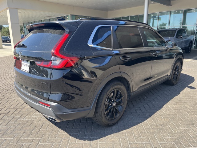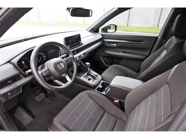 Doggett Honda of Beaumont is proud to present you with another True Market Priced Pre-Owned Vehicle. This 2023 Honda CR-V Hybrid Sport is loaded with the following Factory Options: 4-Wheel Disc Brakes, 4.438 Axle Ratio, 6 Speakers, ABS brakes, Adaptive Cruise Control: Adaptive Cruise Control (ACC) with Low-Speed Follow, Air Conditioning, Alloy wheels, Apple CarPlay/Android Auto, Auto High-beam Headlights, Automatic temperature control, Brake assist, Bumpers: body-color, Cloth Seat Trim, Compass, Delay-off headlights, Driver door bin, Driver vanity mirror, Dual front impact airbags, Dual front side impact airbags, Electronic Stability Control, Exterior Parking Camera Rear, Four wheel independent suspension, Front anti-roll bar, Front Bucket Seats, Front Center Armrest, Front dual zone A/C, Front reading lights, Fully automatic headlights, Heated door mirrors, Heated Front Bucket Seats, Heated front seats, Illuminated entry, Knee airbag, Leather Shift Knob, Leather steering wheel, Low tire pressure warning, Occupant sensing airbag, Outside temperature display, Overhead airbag, Overhead console, Panic alarm, Passenger door bin, Passenger vanity mirror, Power door mirrors, Power driver seat, Power moonroof, Power steering, Power windows, Radio data system, Radio: 240-Watt AM/FM Audio System, Rear anti-roll bar, Rear reading lights, Rear seat center armrest, Rear side impact airbag, Rear window defroster, Rear window wiper, Remote keyless entry, Security system, Speed control, Speed-sensing steering, Speed-Sensitive Wipers, Split folding rear seat, Spoiler, Steering wheel mounted audio controls, Telescoping steering wheel, Tilt steering wheel, Traction control, Trip computer, Turn signal indicator mirrors, Variably intermittent wipers, and Wheels: 18" Berlina Black Alloy!!