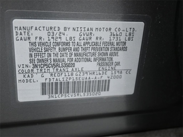 Recent Arrival! Doggett Nissan Of Beaumont is proud to present you with another True Market Priced Vehicle. This 2024 Nissan Kicks SV is loaded with the following Factory Options: 3.93 Axle Ratio, 4-Wheel Disc Brakes, 6 Speakers, ABS brakes, Air Conditioning, Alloy wheels, AM/FM radio: SiriusXM, Apple CarPlay/Android Auto, Auto High-beam Headlights, Blind Spot Warning, Brake assist, Bumpers: body-color, Carpeted Floor Mats w/Cargo Mat, Cloth Seat Trim, Driver door bin, Driver vanity mirror, Dual front impact airbags, Dual front side impact airbags, Electronic Stability Control, Front anti-roll bar, Front Bucket Seats, Front Center Armrest, Front reading lights, Front wheel independent suspension, Fully automatic headlights, Heated door mirrors, Illuminated entry, Knee airbag, Low tire pressure warning, Occupant sensing airbag, Outside temperature display, Overhead airbag, Panic alarm, Passenger door bin, Passenger vanity mirror, Power door mirrors, Power steering, Power windows, Radio data system, Radio: AM/FM Audio System, Rear Parking Sensors, Rear reading lights, Rear side impact airbag, Rear window defroster, Rear window wiper, Remote keyless entry, Speed control, Split folding rear seat, Sport steering wheel, Steering wheel mounted audio controls, Tachometer, Telescoping steering wheel, Tilt steering wheel, Traction control, Trip computer, Variably intermittent wipers, and Wheels: 17" Alloy (5-Hole)!!
