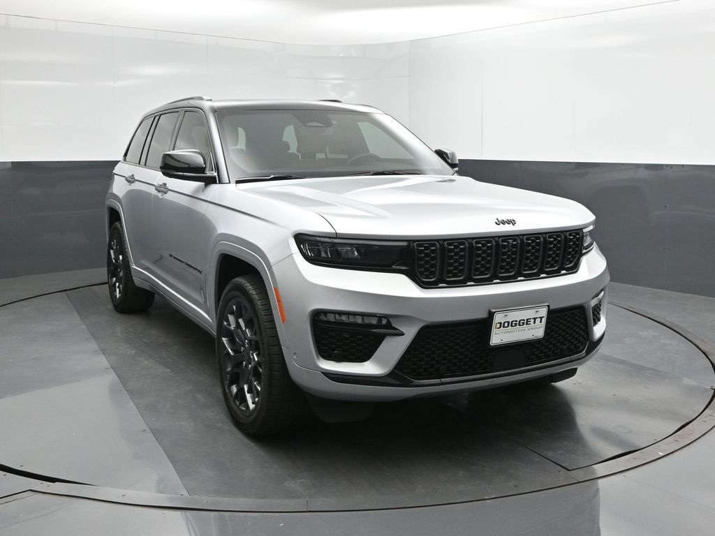 Recent Arrival! Doggett CDJR Of Beaumont is proud to present you with another True Market Priced Pre-Owned Vehicle. This 2025 Jeep Grand Cherokee Summit is loaded with the following Factory Options: Obsidian Package (Gloss Black Exterior Accents, Neutral Gray Exterior Accents, Painted Door Cladding, and Wheels: 21" x 9" Black Painted Aluminum), Quick Order Package 23S, 10 Speakers, 4-Wheel Disc Brakes, ABS brakes, Active Noise Control System, Adaptive suspension, Air Conditioning, Alloy wheels, AM/FM radio: SiriusXM with 360L, Anti-whiplash front head restraints, Audio memory, Auto High-beam Headlights, Auto-dimming door mirrors, Auto-dimming Rear-View mirror, Auto-leveling suspension, Automatic temperature control, Auxiliary Battery, Brake assist, Bumpers: body-color, Compass, Delay-off headlights, Driver door bin, Driver vanity mirror, Dual front impact airbags, Dual front side impact airbags, Electronic Stability Control, Emergency communication system, Four wheel independent suspension, Front anti-roll bar, Front Bucket Seats, Front Center Armrest w/Storage, Front dual zone A/C, Front fog lights, Front License Plate Bracket, Front reading lights, Fully automatic headlights, Garage door transmitter, Genuine wood dashboard insert, Genuine wood door panel insert, Heated door mirrors, Heated front seats, Heated rear seats, Heated steering wheel, Illuminated entry, Knee airbag, Leather steering wheel, Low tire pressure warning, Memory seat, Model Year Tracking, Nappa Leather Seats, Navigation System, Normal Duty Suspension, Occupant sensing airbag, Outside temperature display, Overhead airbag, Overhead console, Panic alarm, Passenger door bin, Passenger vanity mirror, Power door mirrors, Power driver seat, Power Liftgate, Power moonroof, Power passenger seat, Power steering, Power windows, Radio data system, Radio: Uconnect 5 Nav with 10.1" Display, Rain sensing wipers, Rear air conditioning, Rear anti-roll bar, Rear dual zone A/C, Rear reading lights, Rear seat center armrest, Rear window defroster, Rear window wiper, Remote keyless entry, Security system, Speed control, Speed-Sensitive Wipers, Split folding rear seat, Spoiler, Steering wheel memory, Steering wheel mounted audio controls, Tachometer, Telescoping steering wheel, Tilt steering wheel, Traction control, Trip computer, Turn signal indicator mirrors, Variably intermittent wipers, Ventilated front seats, Voltmeter, and Wheels: 20" x 8.5" Fully Painted Aluminum Silver!!